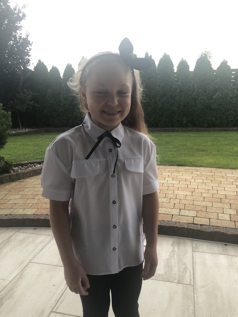 Biała koszula dziewczęca z krótkim rękawem ozdobnymi guzikami