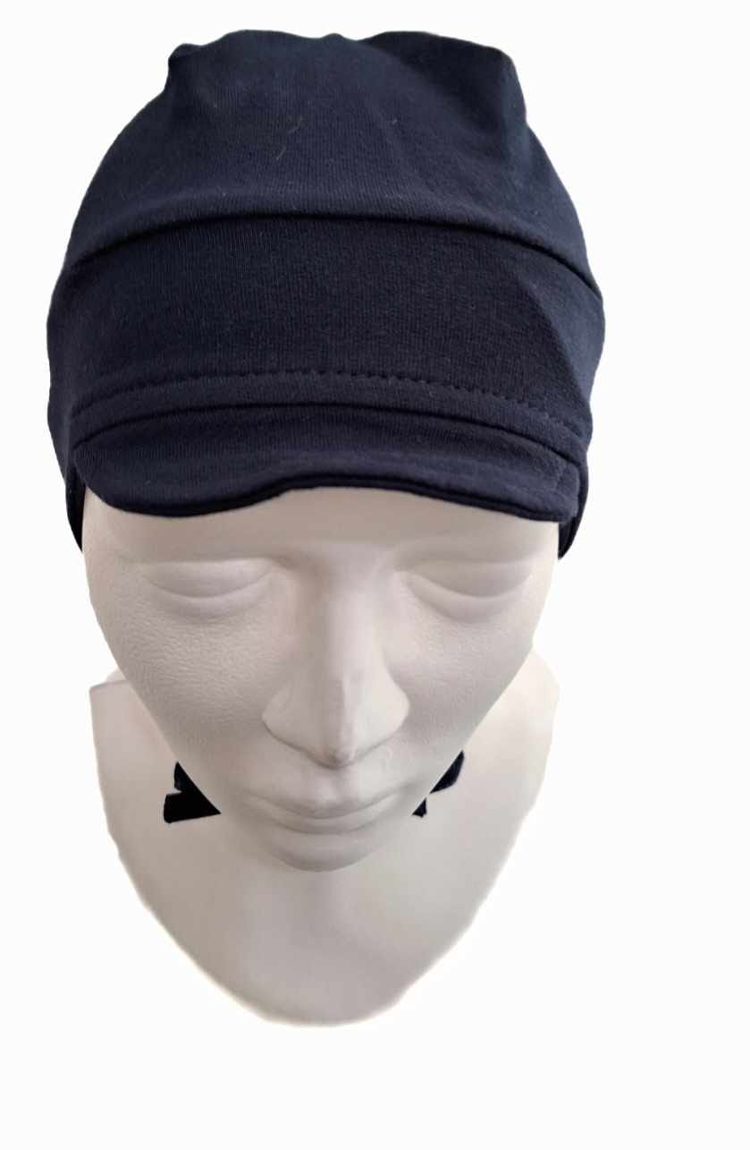 Czapka chłopięca z daszkiem na wiązanie granatowa
