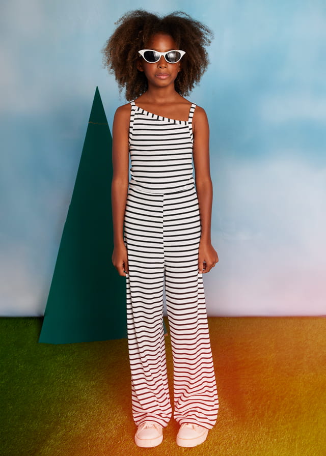 Kombinezon długi w paski dla dziewczynki MAYORAL 6867 biało, czarny