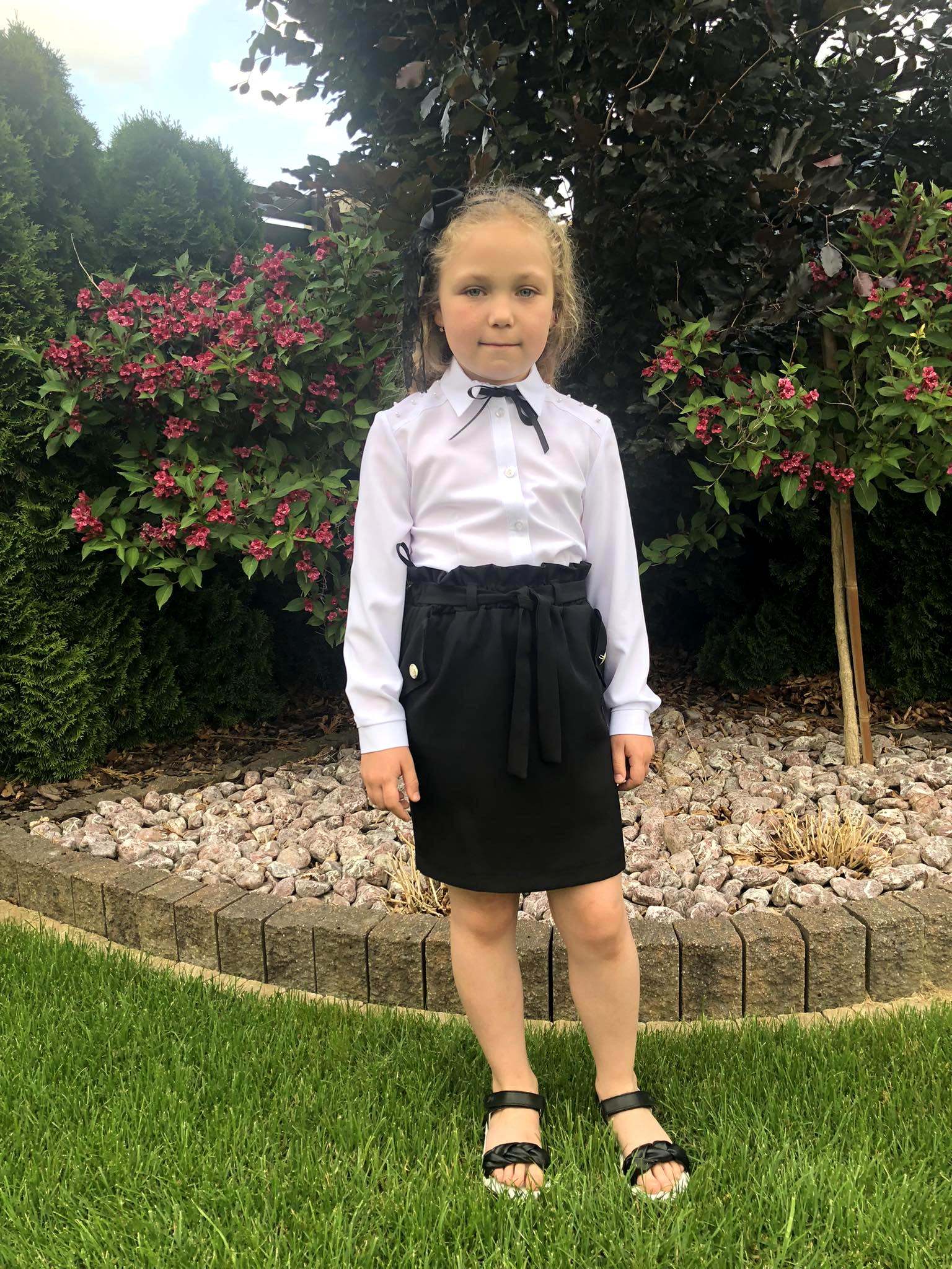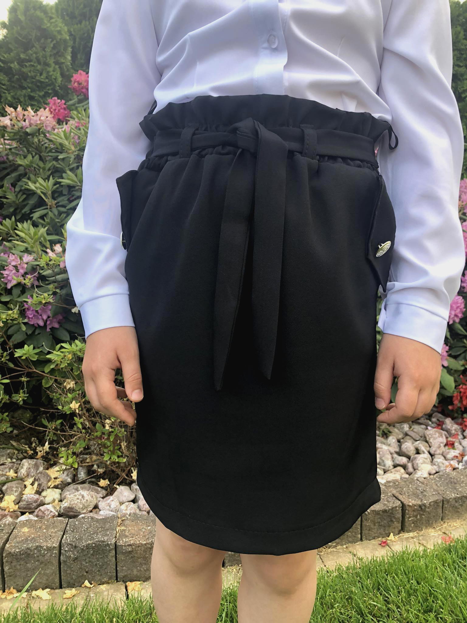 Ta stylowa spódniczka dziewczęca w kolorze czarnym to idealny dodatek do garderoby małych fashionistek. Wykonana z wysokiej jakości materiału, spódniczka prezentuje się elegancko i modnie. Ozdobione guziczki dodają uroku i charakteru całej stylizacji. Przepięknie przycinająca się do talii, spódniczka jest wygodna w noszeniu i łatwa w zakładaniu dzięki przewiązywanemu paskowi. To doskonały wybór na wiele różnych okazji, od codziennych do bardziej formalnych.